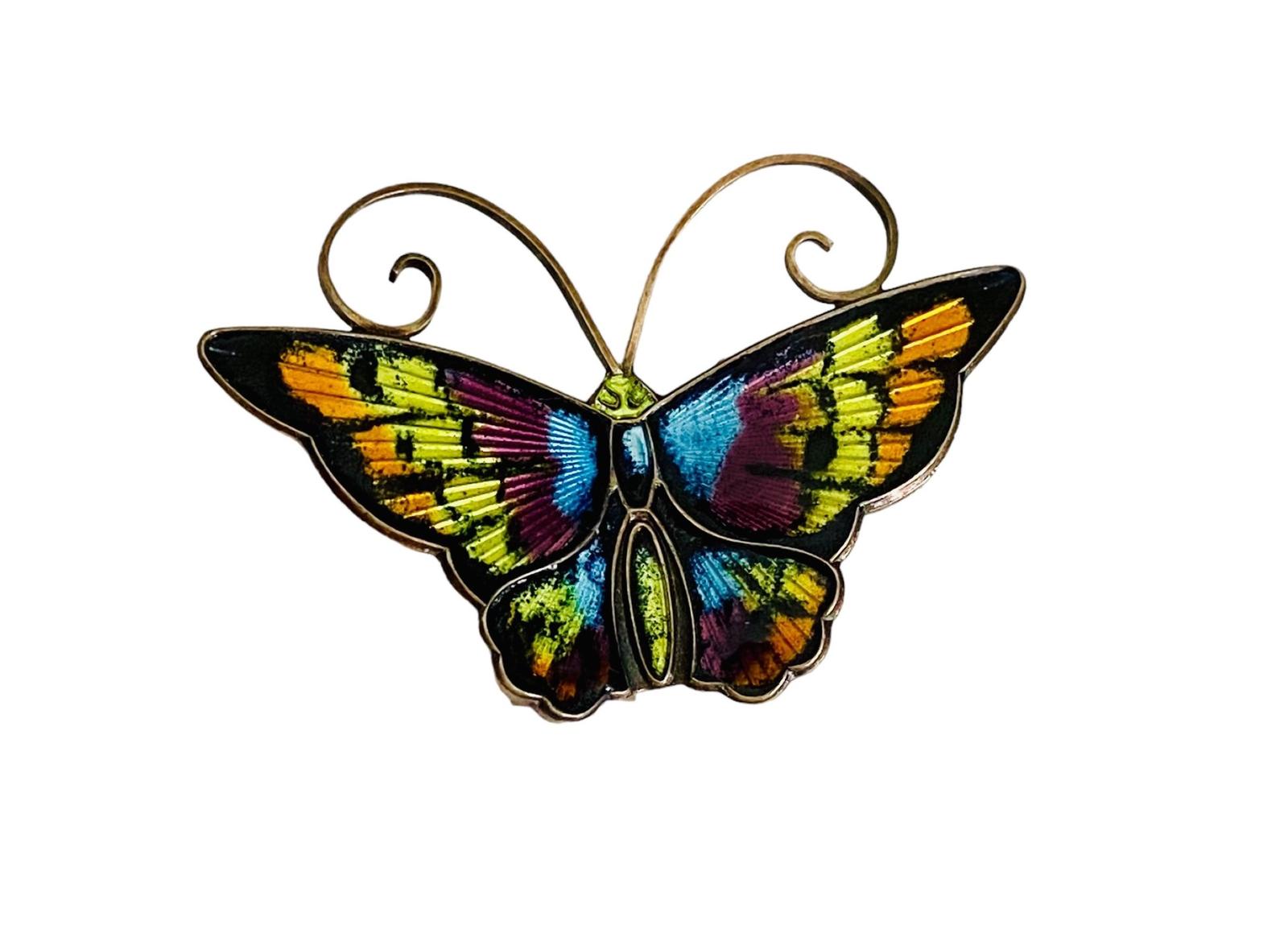 Vintage 1950s David Andersen Norway Sterling Silver Guilloche Enamel Butterfly Brooch / Pin
