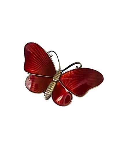 Vintage 1950s Ivar T Holth Norway Sterling Silver Guilloche Enamel Butterfly Brooch / Pin