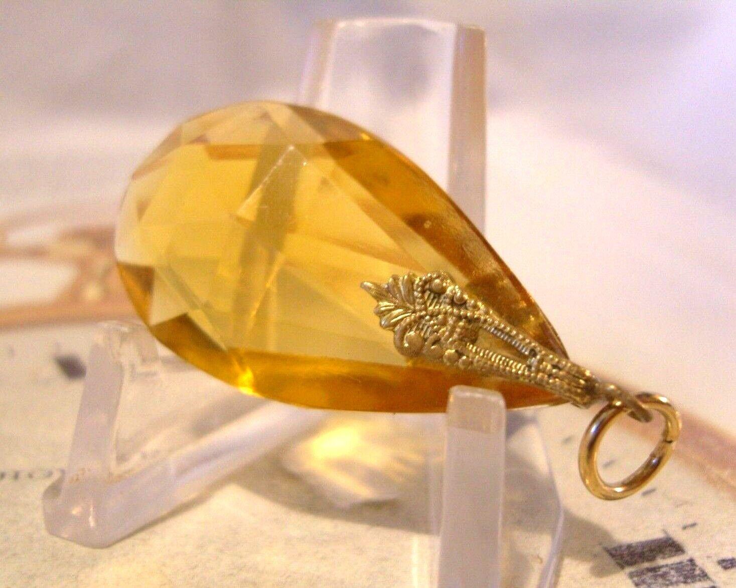 Vintage 1950s Pocket Watch Chain Fob Large Golden Gilt & Citrine Glass Fob