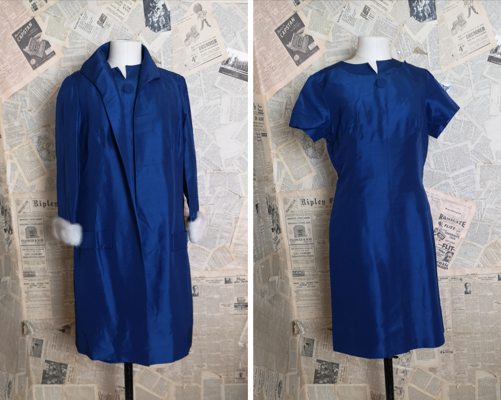 Vintage 1950s Silk Dress with Duster Coat