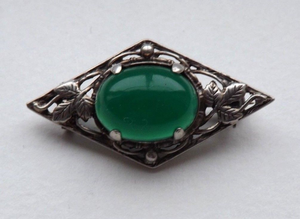 Vintage 1950s Sterling Silver & Chrysoprase Brooch - Bernard Instone
