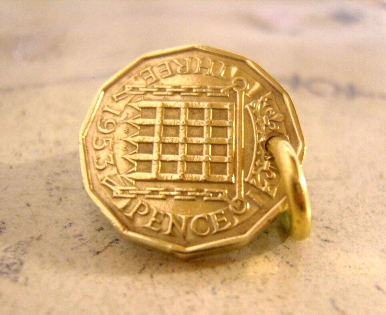 Vintage 1953 Pocket Watch Chain Fob Queen Elizabeth Threppenny Bit 3d Coin Fob