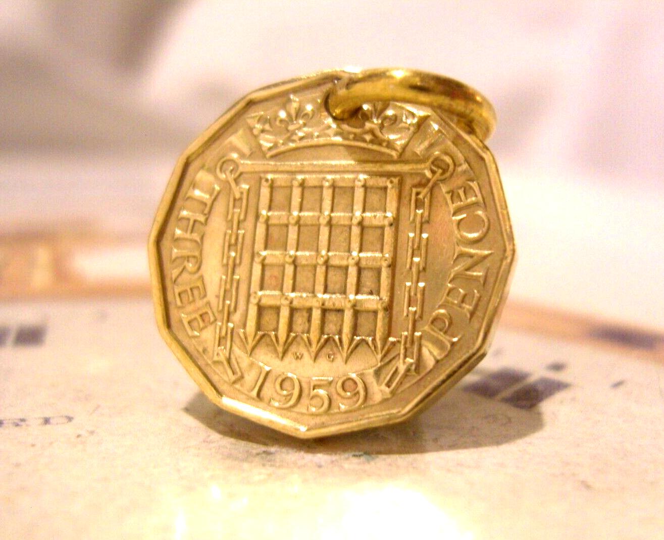 Vintage 1959 Pocket Watch Chain Fob Queen Elizabeth Threppenny Bit 3d Coin Fob