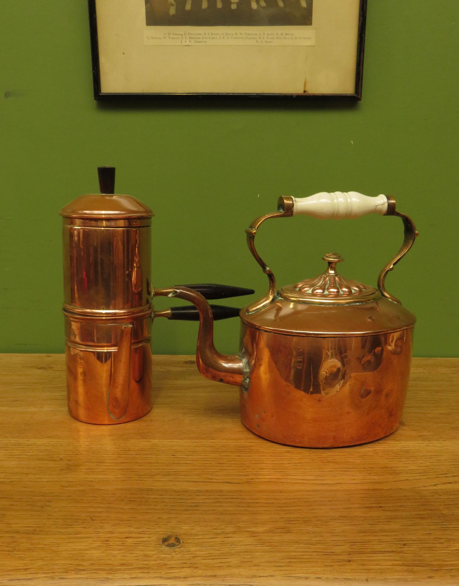 Vintage 1960s Douro Copperware Neapolitan Italian Coffee Maker & a Copper Kettle