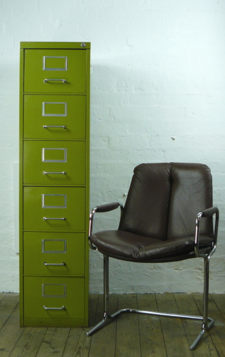 Vintage 1960s Narrow Six Drawer Pea Green Metal Cabinet - Matching Smaller Cabinets Available (1 of 1)