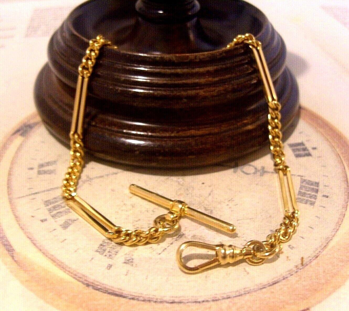 Vintage 1960s Pocket Watch Chain 12ct Gold Plated Fancy Figaro Link Albert With T Bar