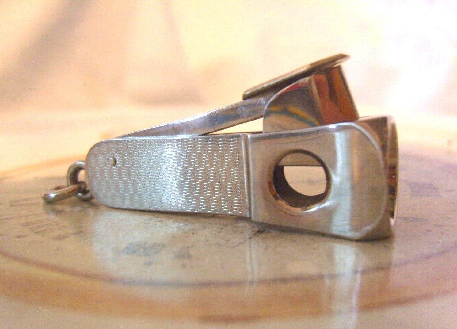 Vintage 1960s Pocket Watch Chain Cigar Cutter Fob Large Ornate Silver Chrome Fob