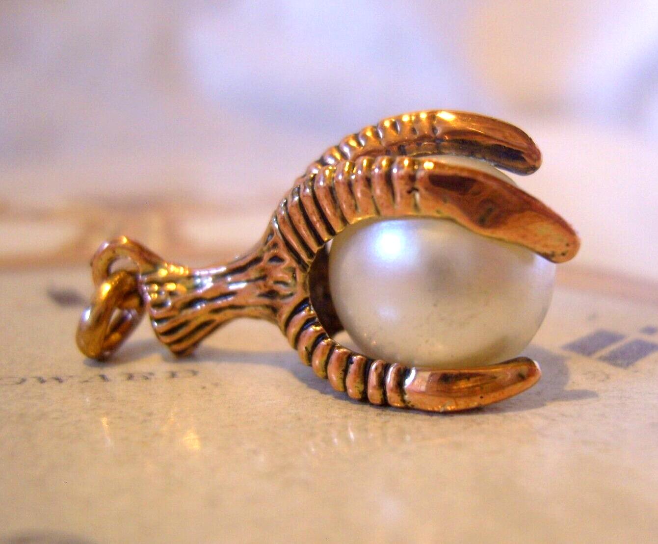 Vintage 1960s Pocket Watch Chain Large Ornate Rose Gilt Talon Or Claw Pearl Fob
