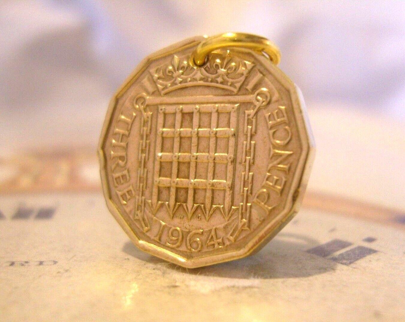 Vintage 1964 Pocket Watch Chain Coin Fob Lucky Truppenny Bit Old 3d Coin Fob