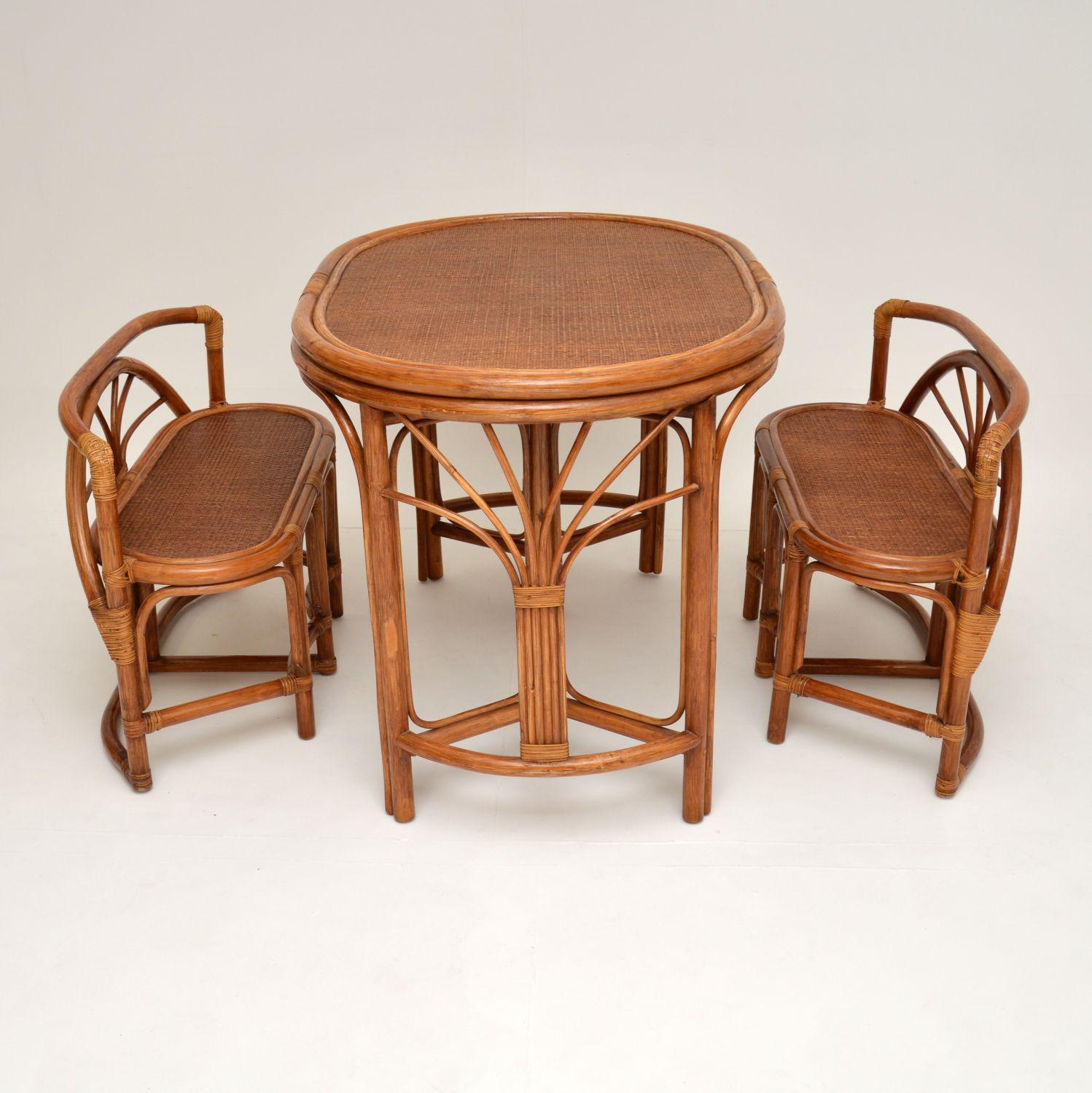 Vintage 1970's Bamboo & Rattan Games Table & Chairs