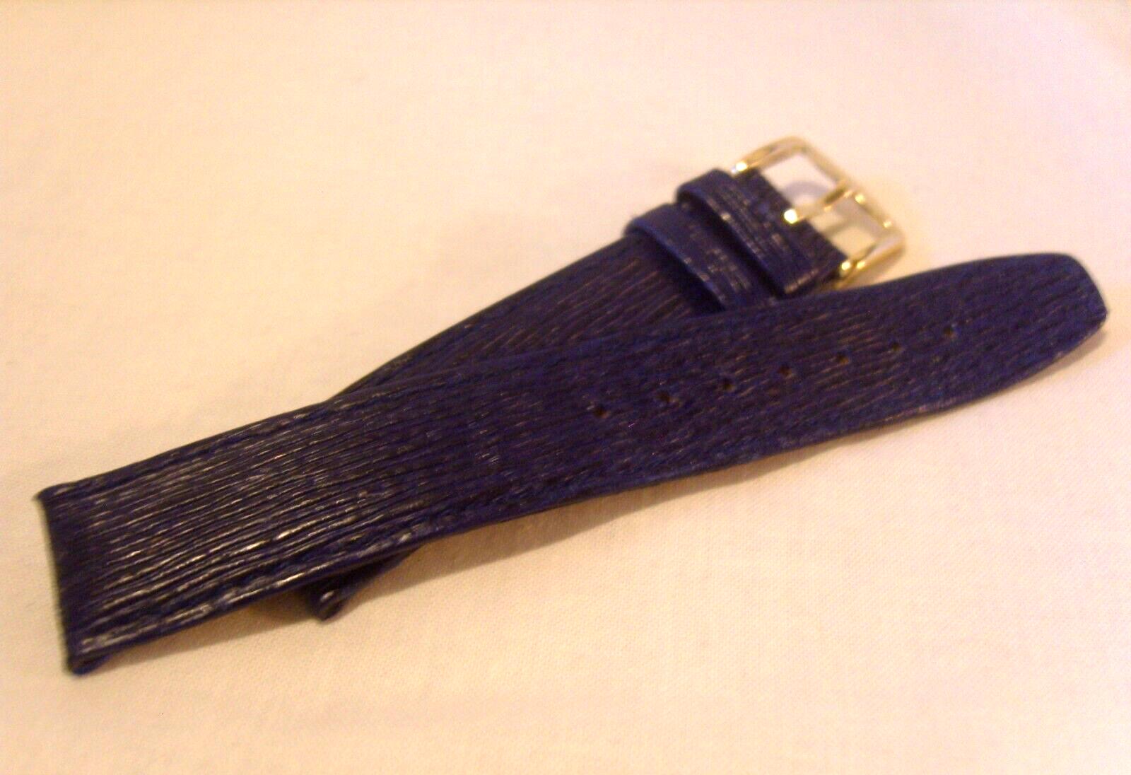 Vintage 1970s Hirsch Linnea Wrist Watch Strap 18mm Blue Embossed Lizard Grain