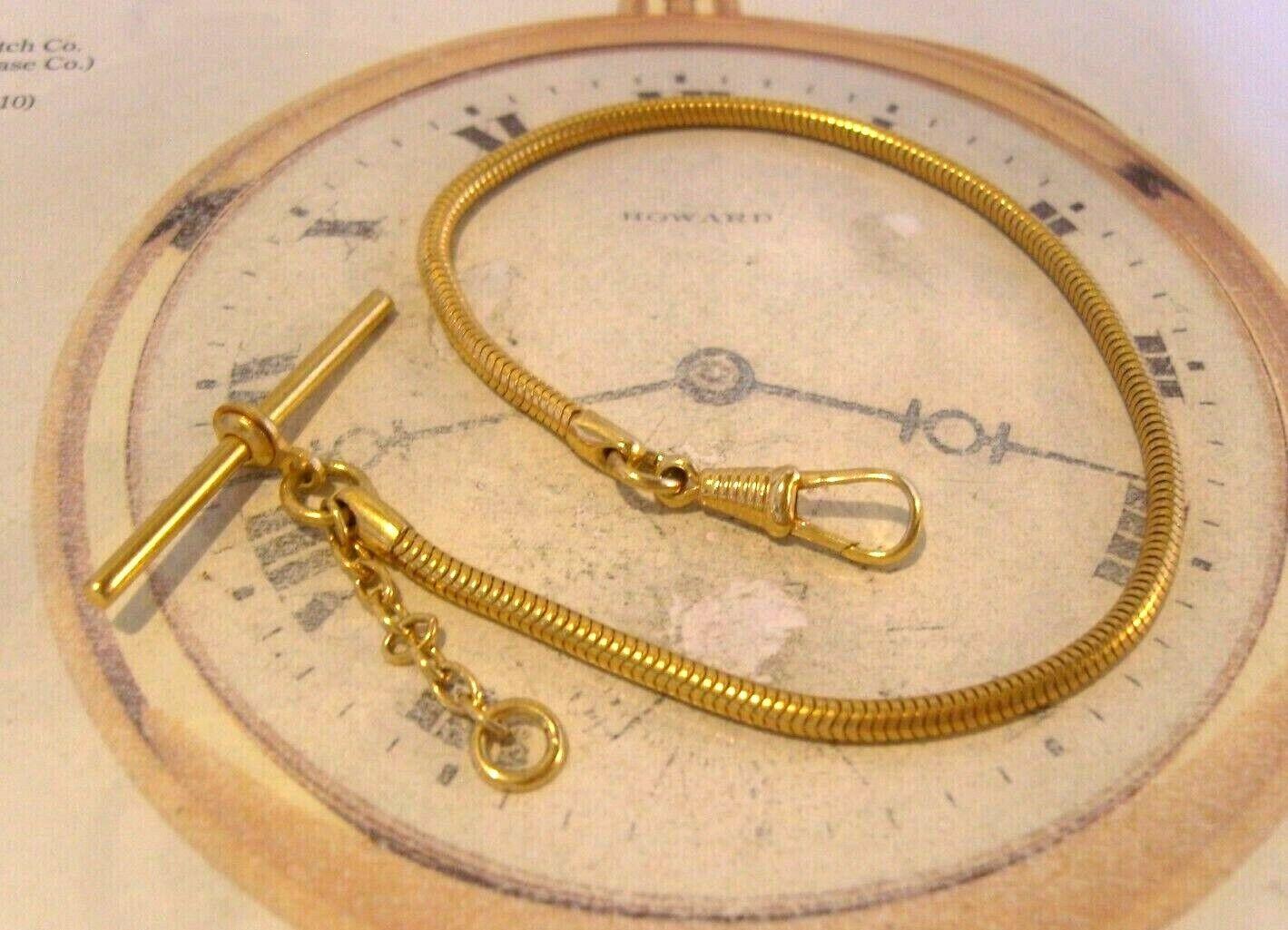 Vintage 1970s Pocket Watch Chain 12ct Gold Plated Snake Link Albert & T Bar Nos
