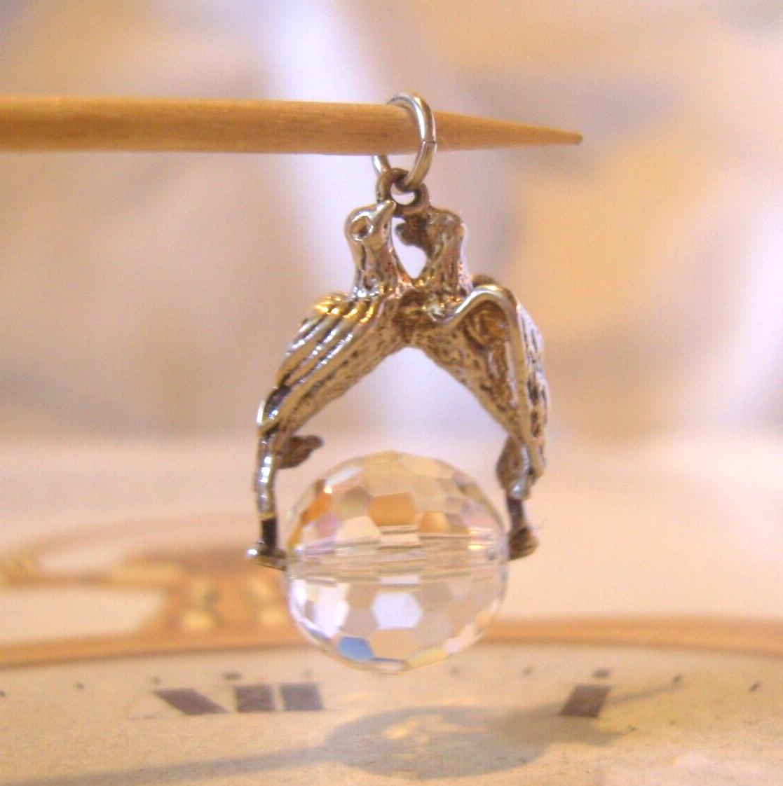 Vintage 1970s Pocket Watch Chain Silver Fob Victorian Style Love Birds & Crystal