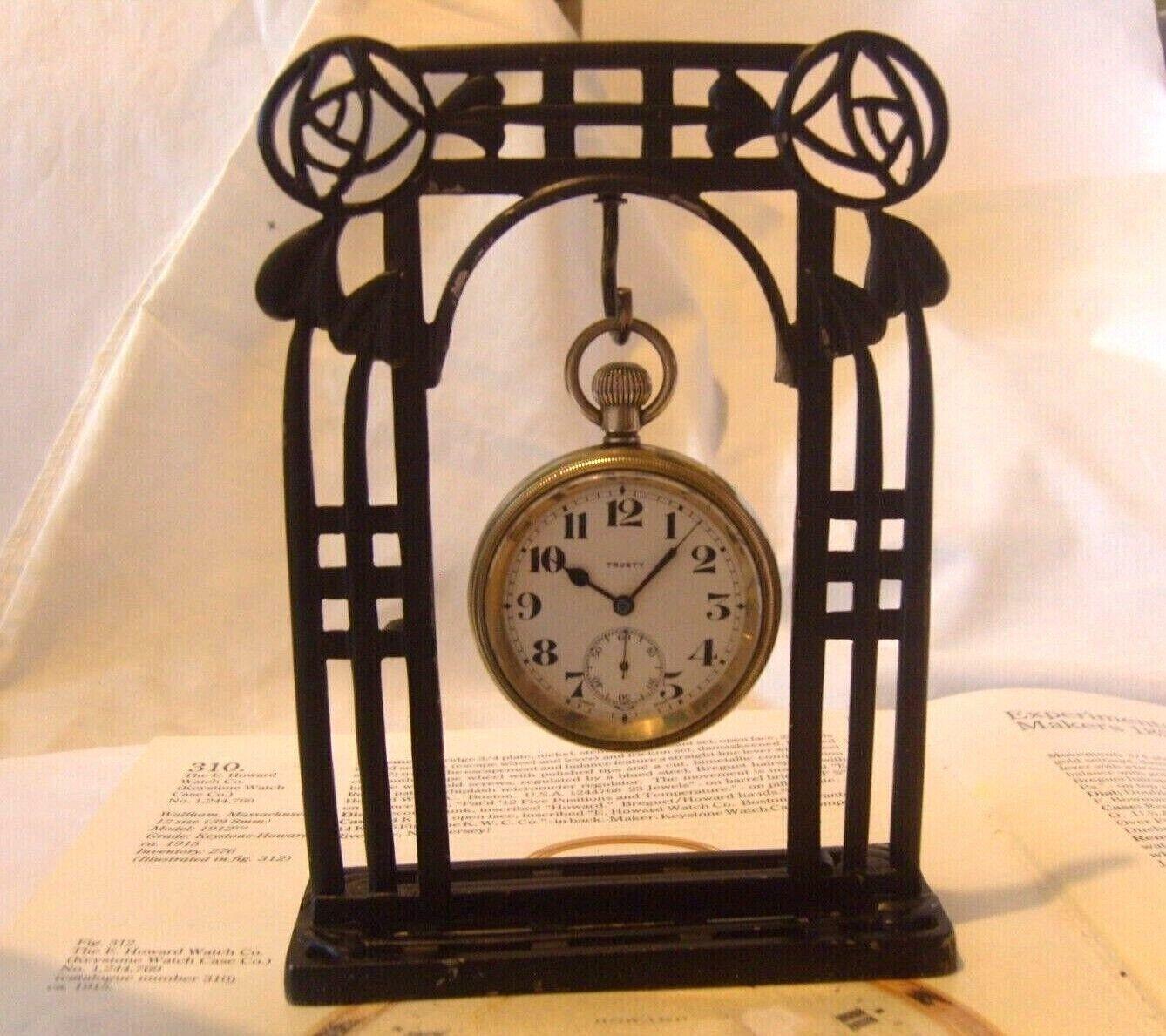 Vintage 1970s Pocket Watch Display Stand Rennie Mackintosh Style Large Black Steel