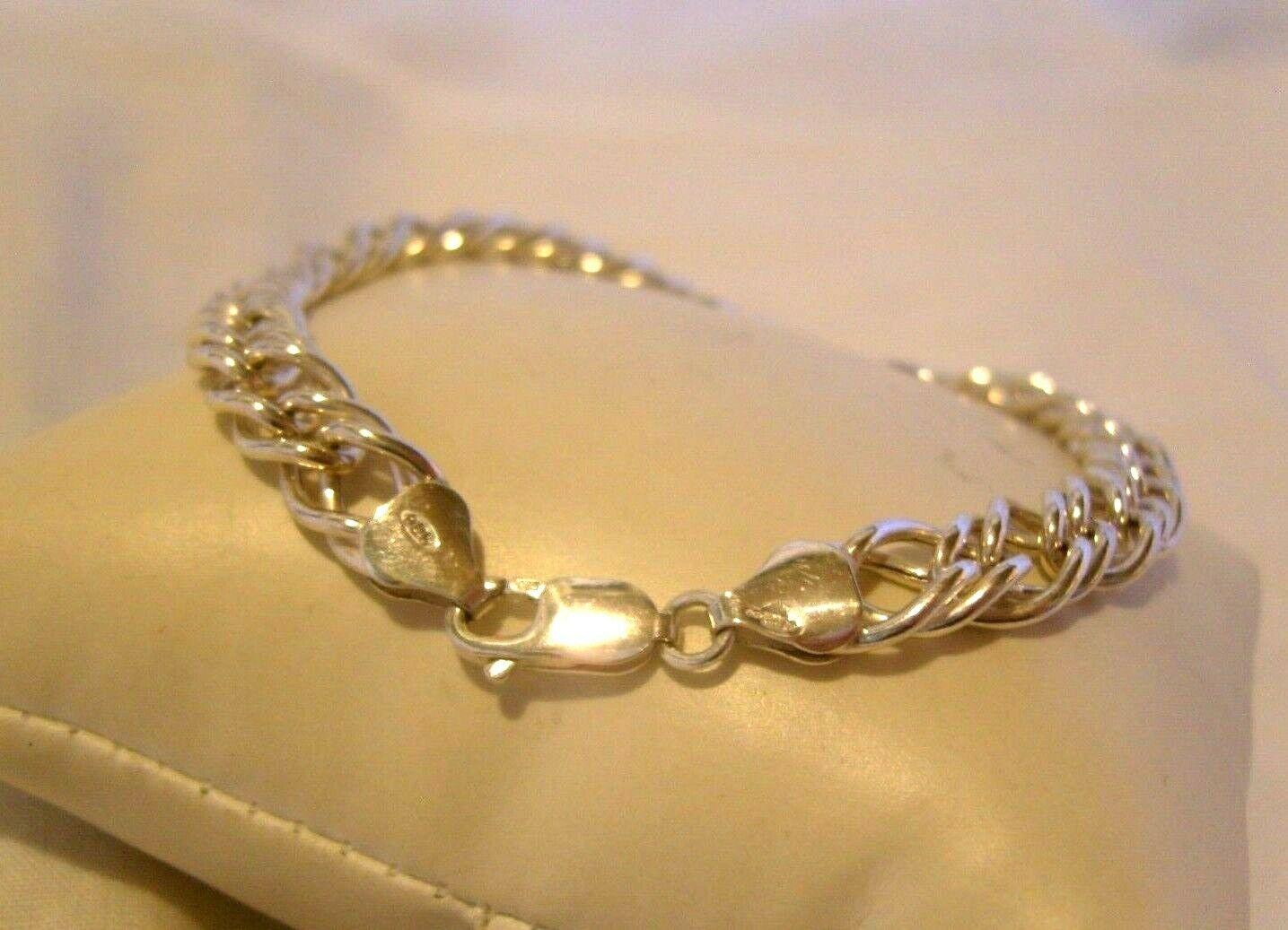 Vintage 1970s Silver 925 Bracelet Double Curb Link Big Lobster Clasp 8" Length