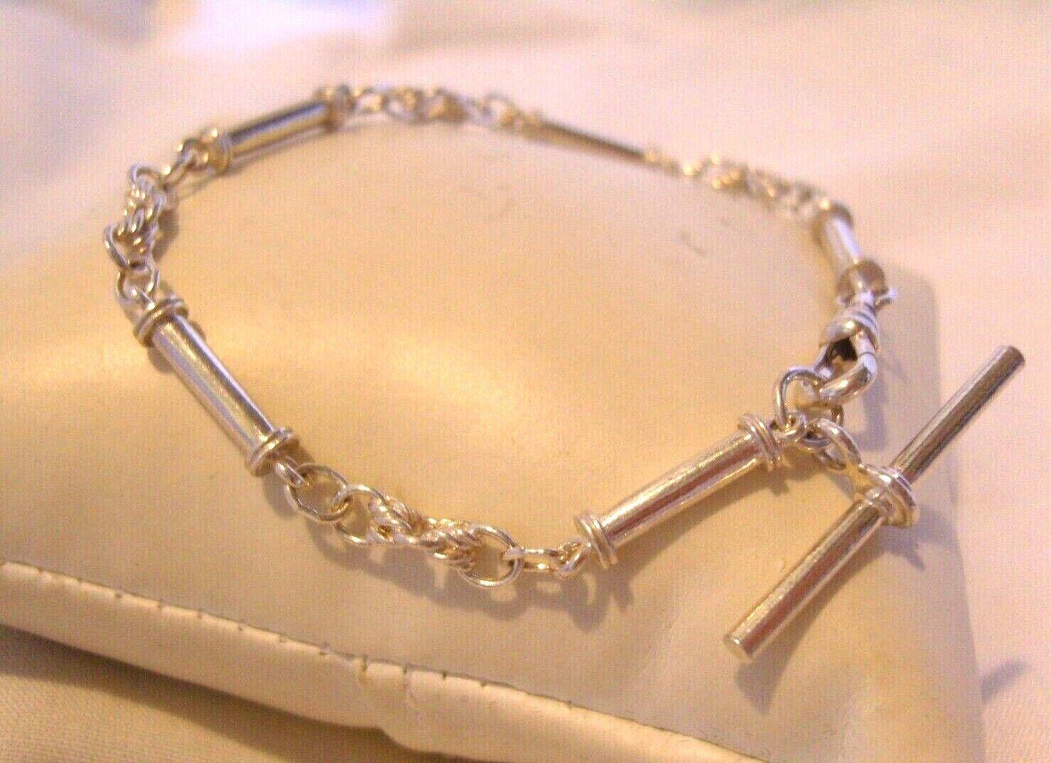 Vintage 1970s Sterling Silver Bracelet Victorian Style Albertina With T Bar 7 3/4" Length