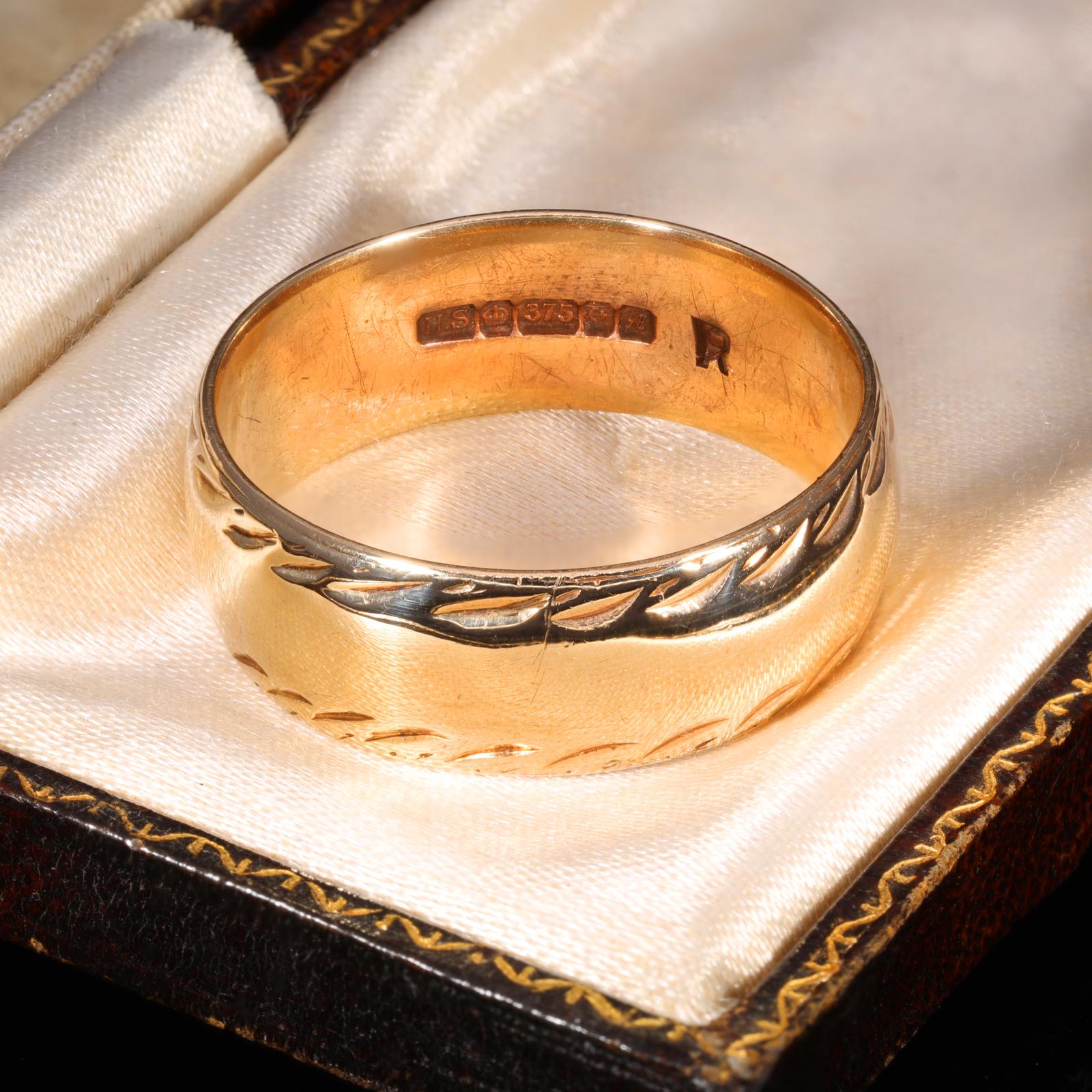 Vintage 1975 Patterned 9ct Gold Wedding Ring