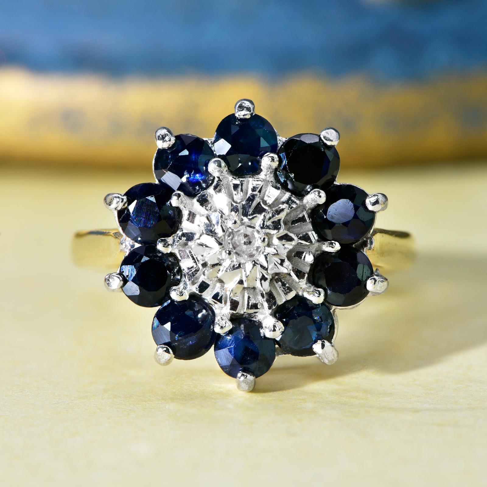 Vintage 1980 Sapphire and Single Cut Diamond Ring