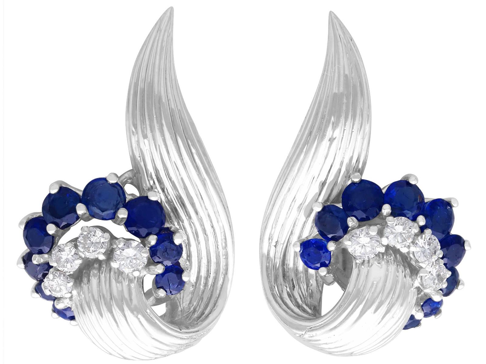 A stunning, fine and impressive pair of vintage 2.05 carat sapphire and 0.65 carat diamond, 18 karat white gold stud earrings; part of our diverse vintage jewelry and estate jewelry collections.