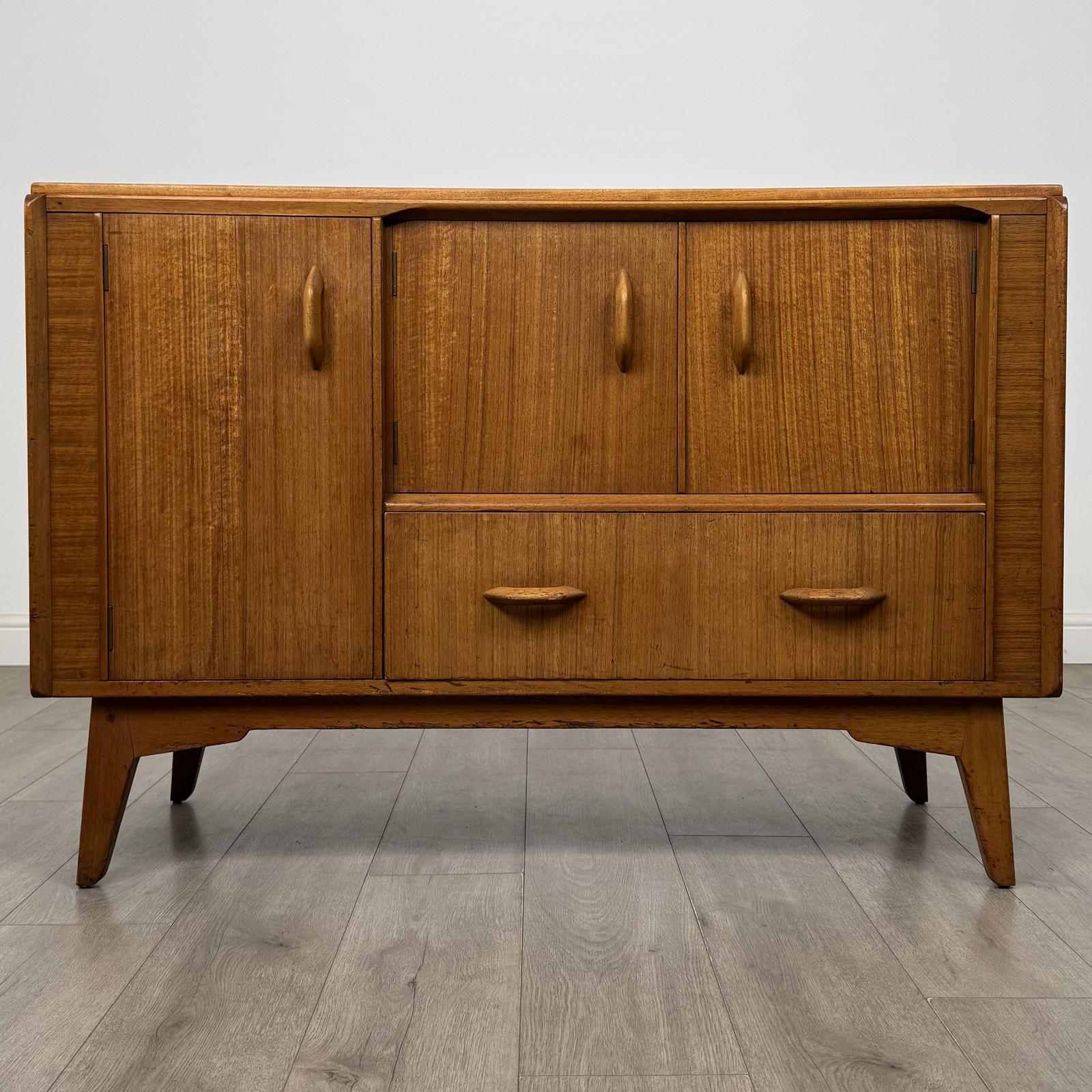 A charming vintage 20th century good quality sideboard in walnut, very well made and of strong construction, offering both practicality and attractive design.