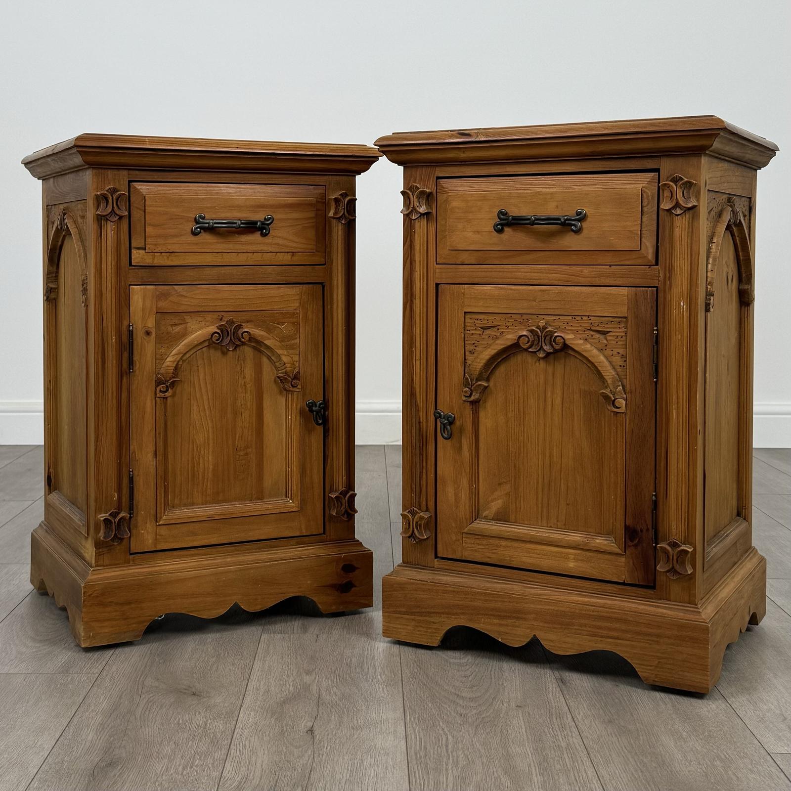 Vintage 20th Century Pair Of Gothic Style Bedside Cabinets