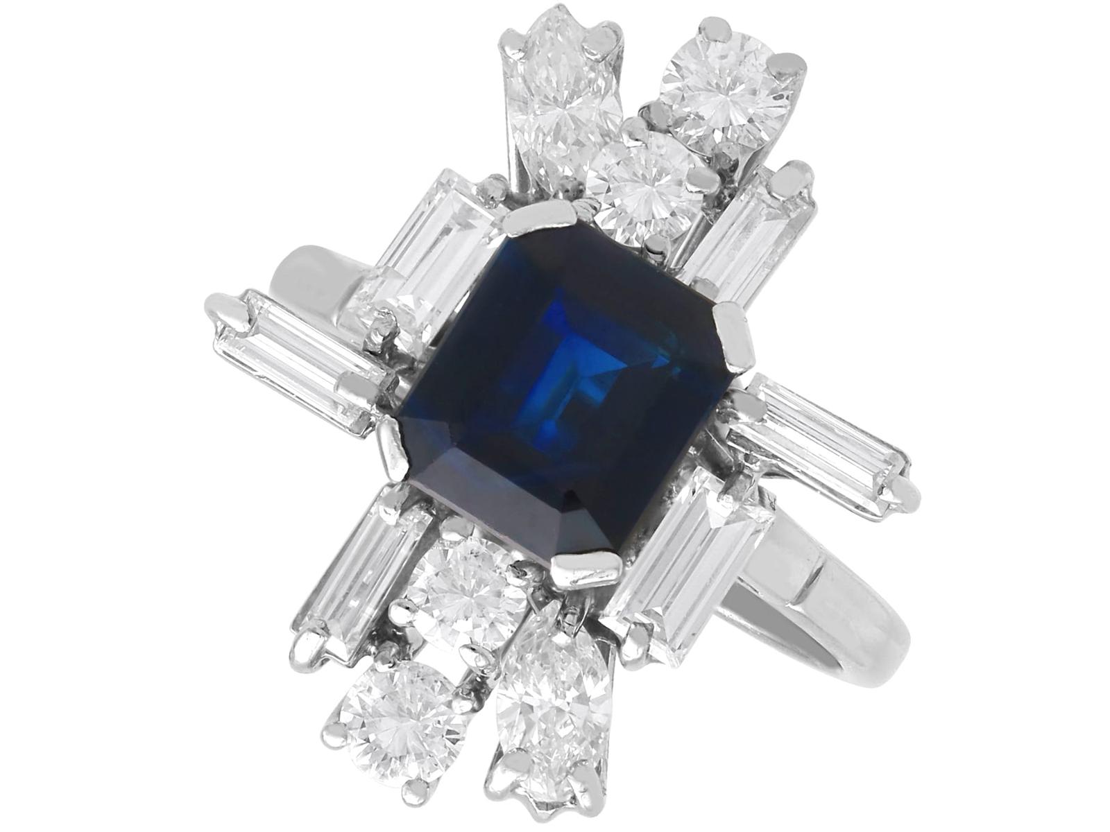 A stunning, fine and impressive vintage 2.10 carat sapphire and 2.42 carat diamond, 14 karat white gold ring; part of our sapphire jewelry collection.