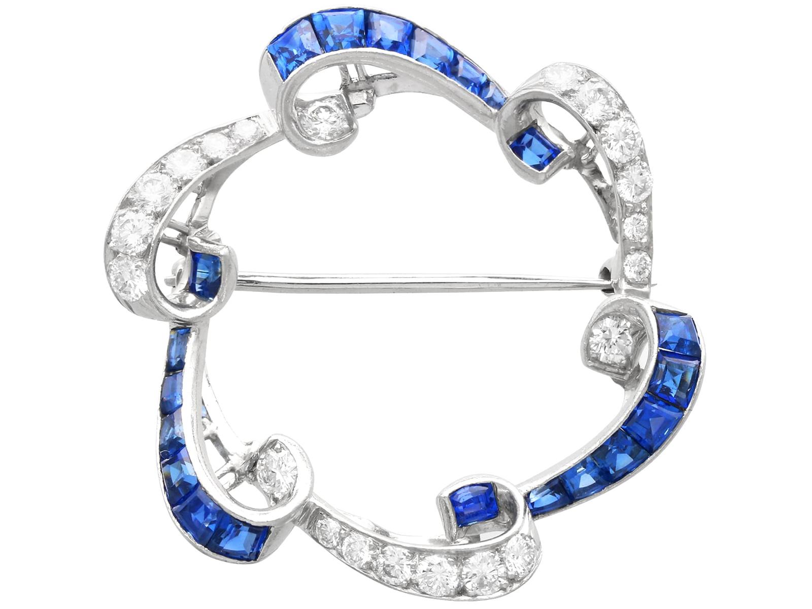 Vintage 2.45ct Sapphire & 1.75ct Diamond, Platinum Brooch c.1945