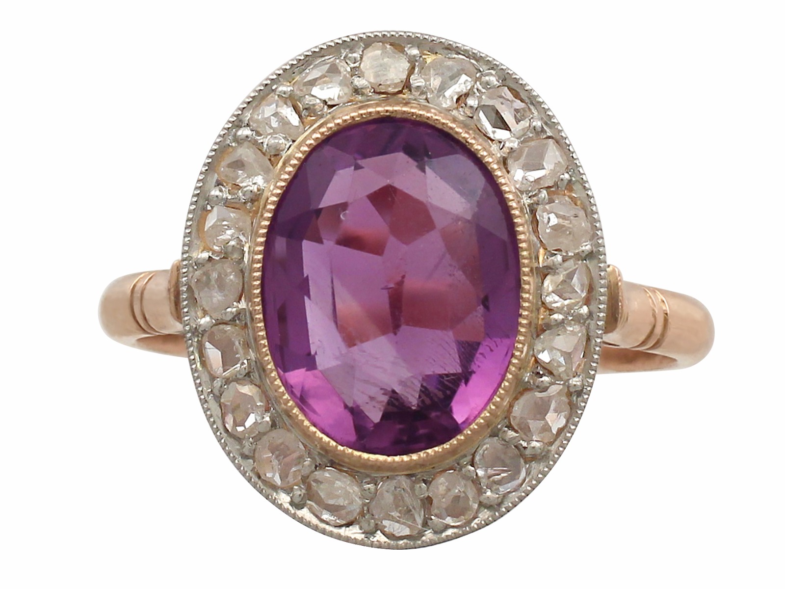 Vintage 2.65ct Amethyst & 0.38ct Diamond, 15ct Rose Gold Cluster Ring (1 of 1)