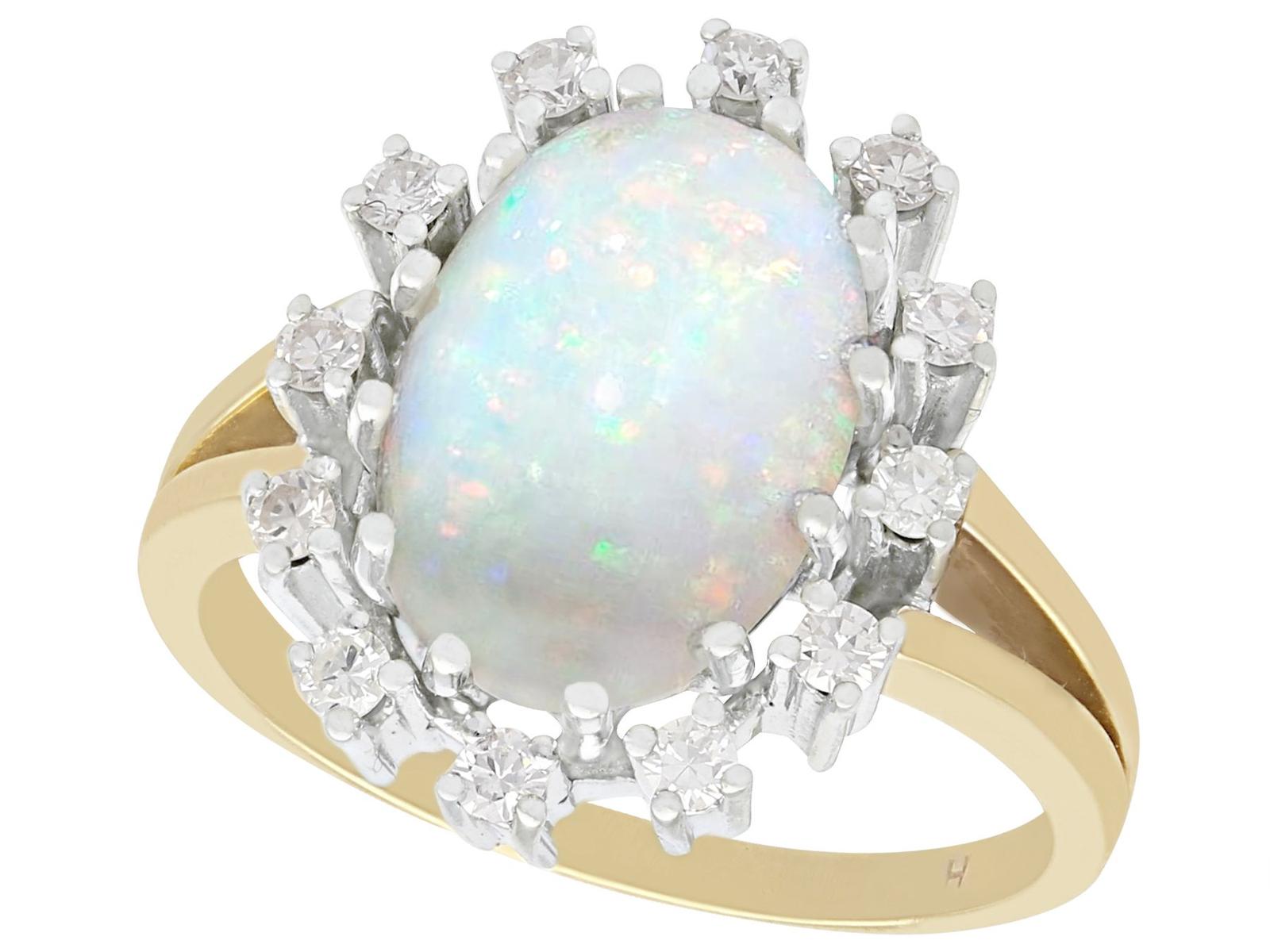 Vintage 3.01ct Opal & 0.38ct Diamond, 14ct Yellow Gold Dress Ring c.1960