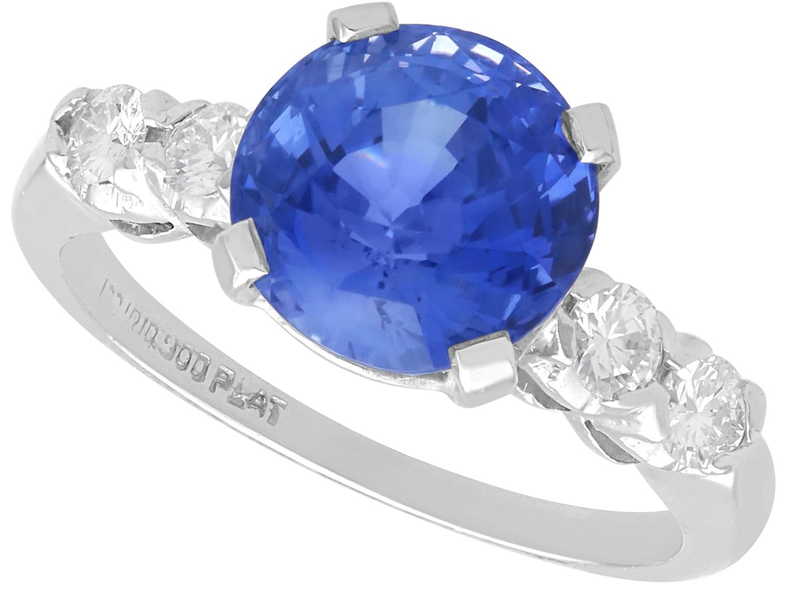 A stunning, fine and impressive vintage 3.20 carat sapphire and 0.30 carat diamond, platinum ring; part of our collection of sapphire engagement rings.