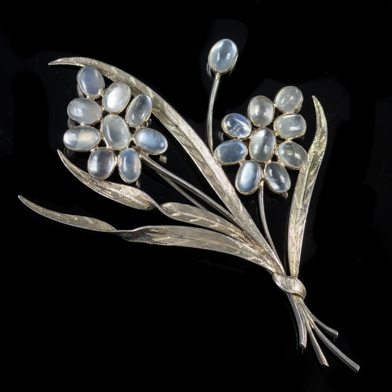 Vintage 38ct Moonstone Flower Spray Brooch Silver c.1960