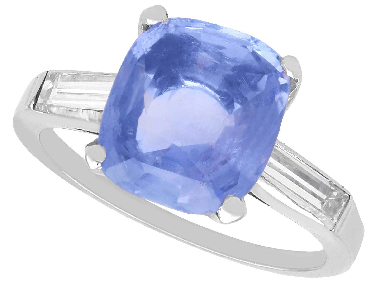 Vintage 4.20ct Ceylon Sapphire & 0.40ct Diamond, Platinum Ring c.1945 (1 of 10)