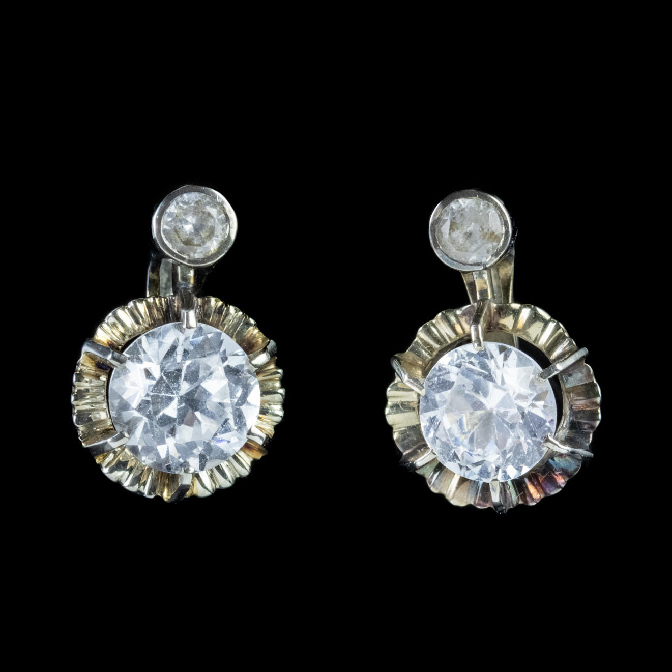 Vintage 4.4ct White Topaz French Drop Earrings c.1930