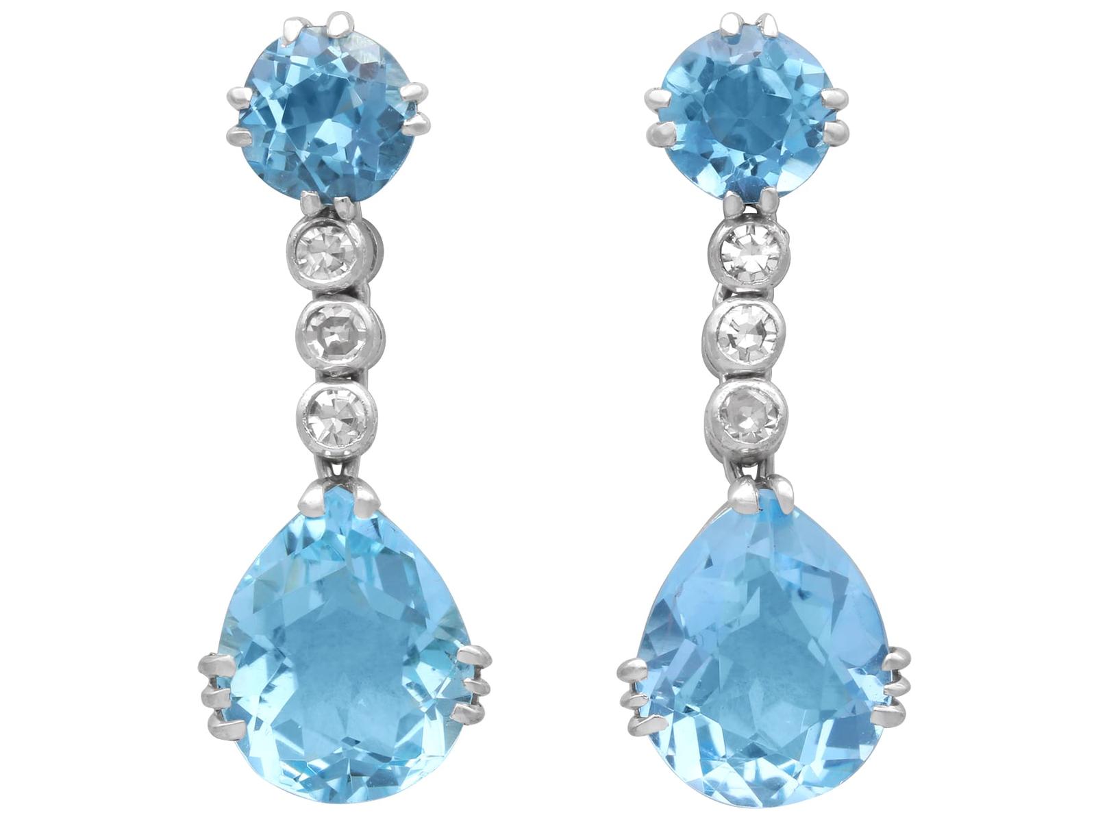 A stunning, fine and impressive pair of vintage 5.40 carat aquamarine and 0.21 carat diamond, 14 karat white gold drop earrings; part of our aquamarine jewellery collection.