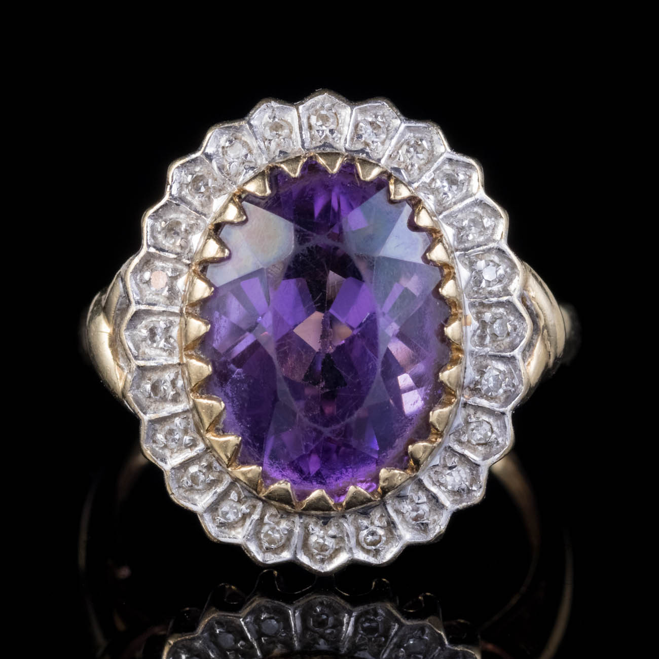 Vintage 5ct Amethyst Diamond Ring 9ct Gold c.1950