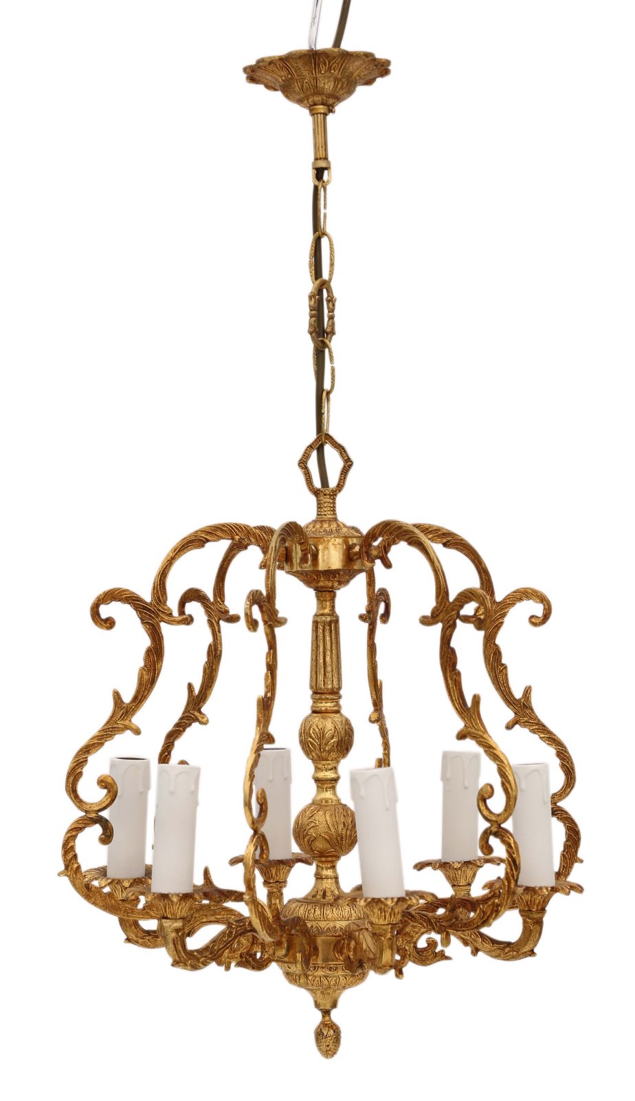 Vintage 6 Lamp / Arm Ormolu Brass Bird Cage Chandelier