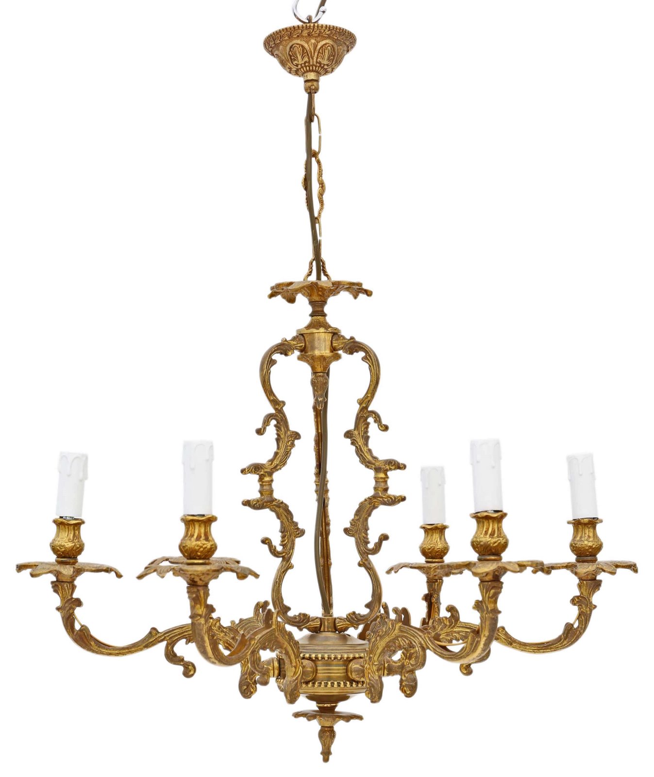 Vintage 6 Lamp / Arm Ormolu Brass Chandelier (1 of 1)