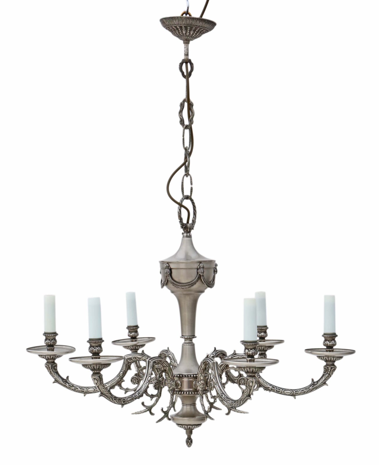Vintage 6 Lamp / Arm Silvered Brass Chandelier (1 of 8)