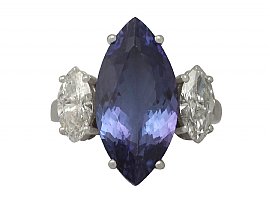 Vintage 6.14 ct Tanzanite & 1.35 ct Diamond, 18 ct White Gold Dress Ring c.1990