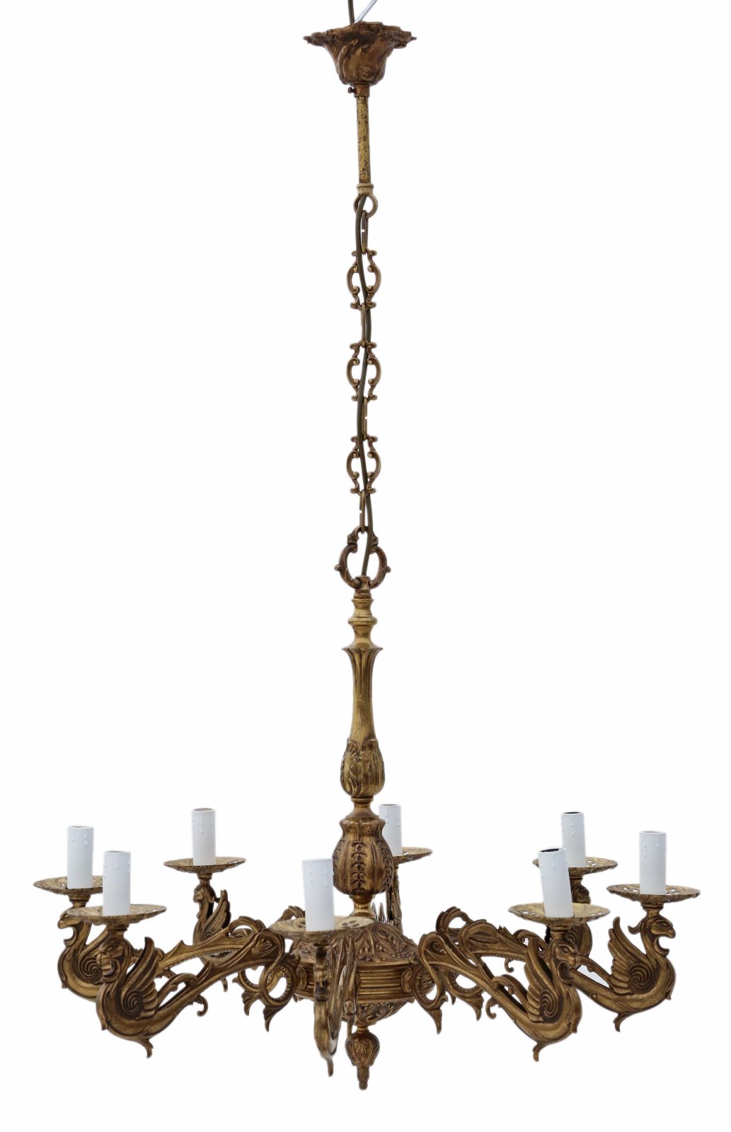 Vintage 8 Lamp / Arm Ormolu Brass Chandelier (1 of 9)