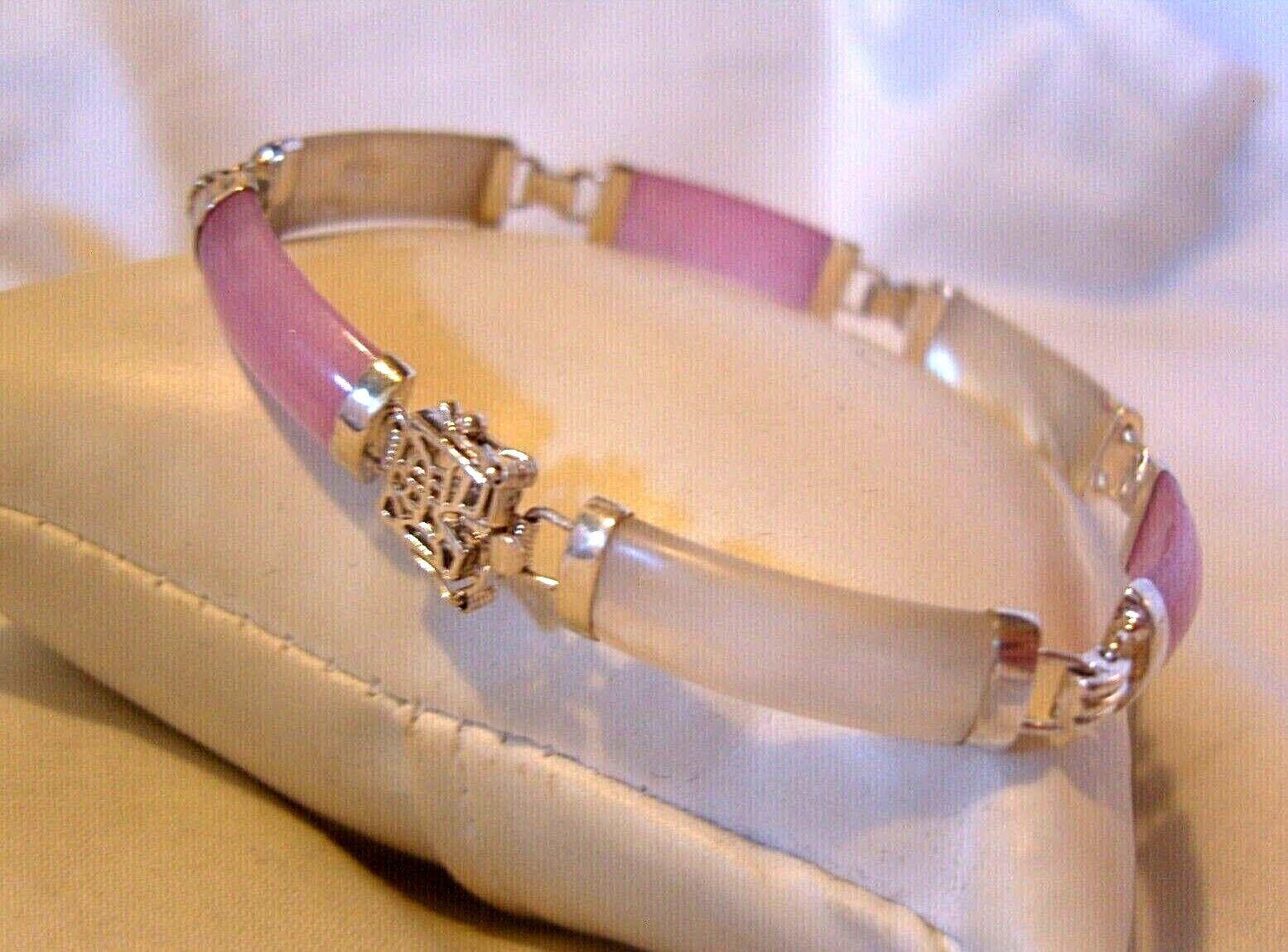 Vintage 925 Silver Pink Jade & Mother of Pearl Chinese Bracelet 1970s