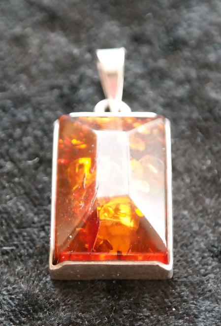 Vintage 925 Sterling Silver Baltic Amber Pendant & 17.5