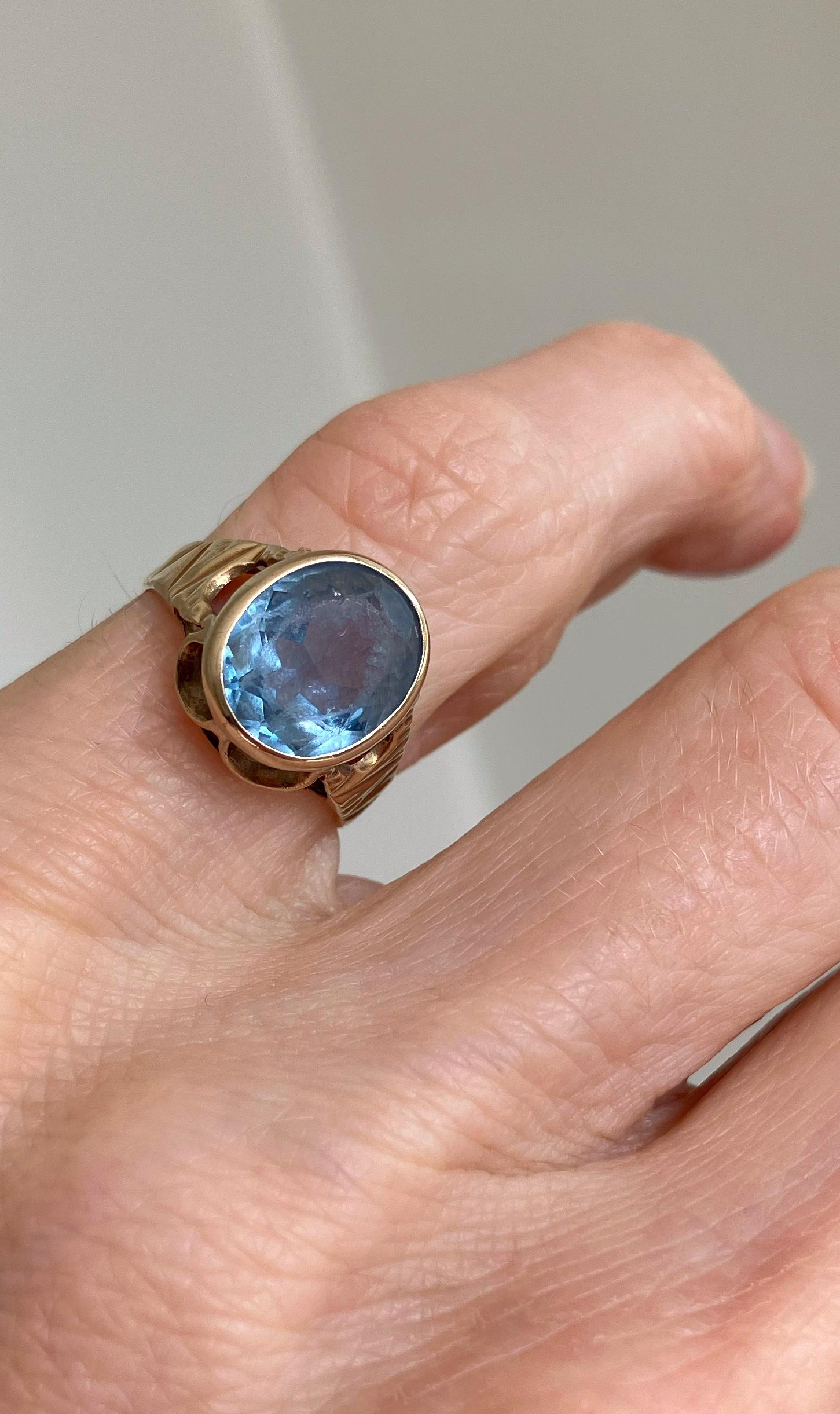 Vintage 9ct Gold Aquamarine Signet Pinky Ring - Size G