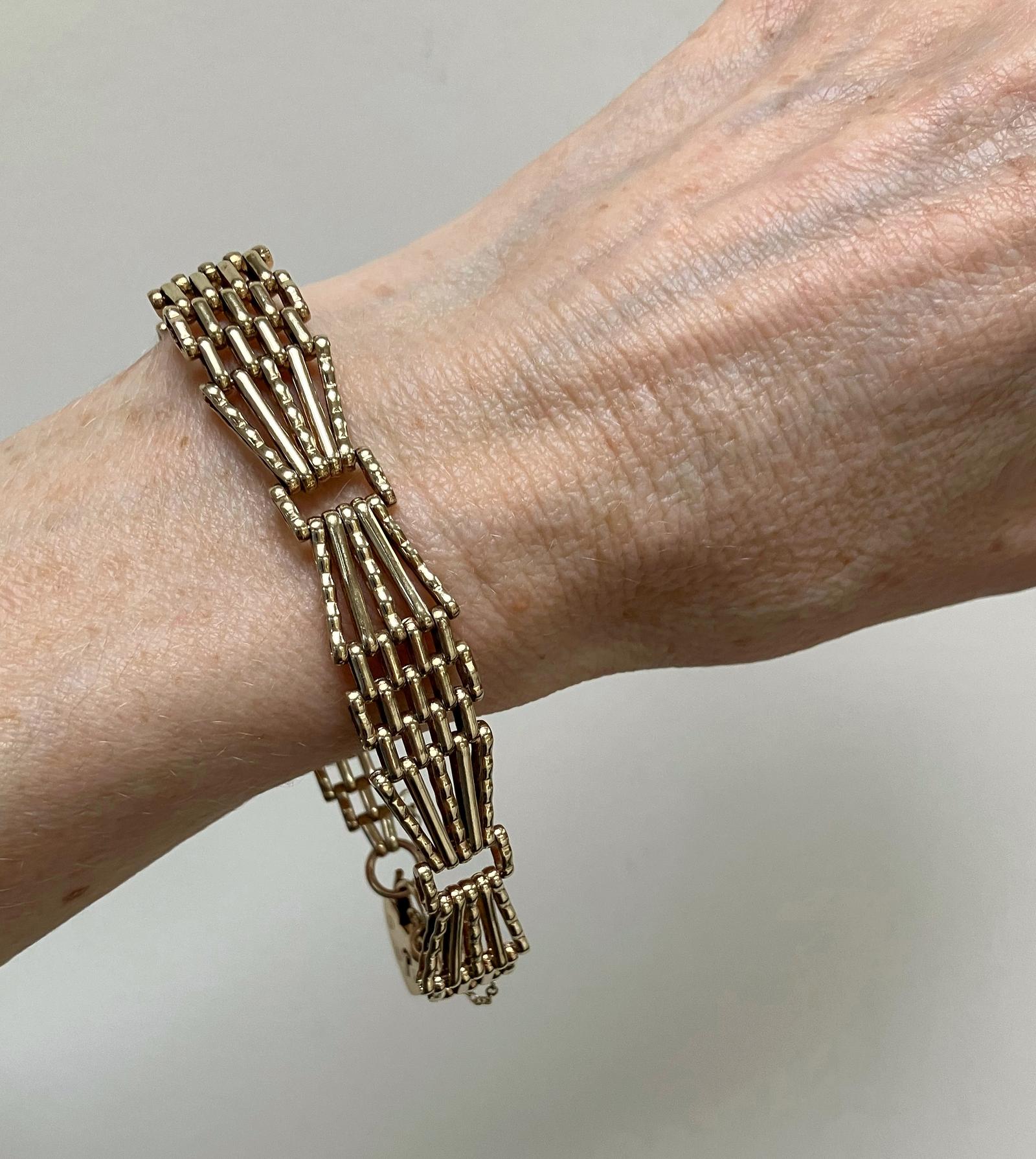 Vintage 9ct Gold Bow Gate Link Bracelet - 21g