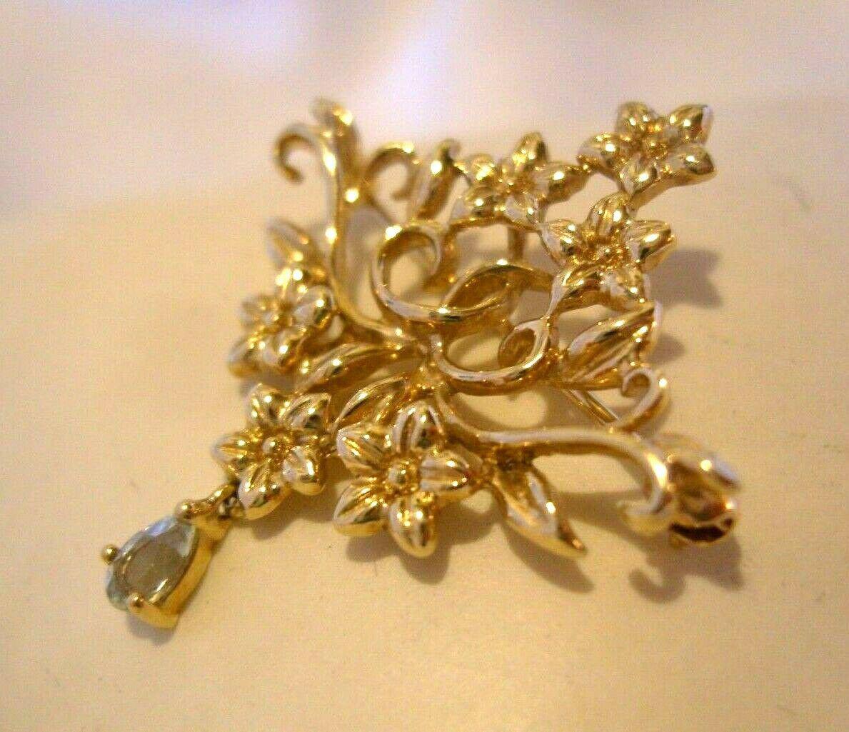 Vintage 9ct Gold Brooch 1978 Hallmarked Solid Yellow Gold & Aquamarine Stone Brooch