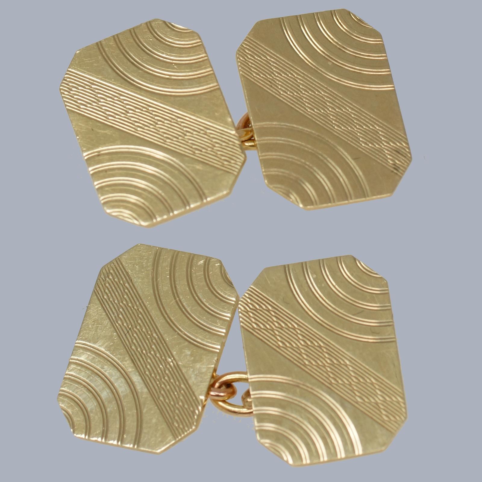 Vintage 9ct Gold Cufflinks by Henry Griffiths – Birmingham 1966 Hallmarked – Art Deco Style