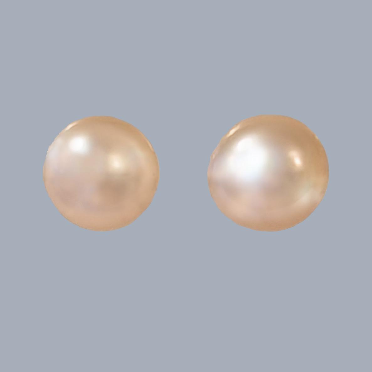 Vintage 9ct Gold Cultured Pearl Stud Earrings 7mm Button Shape c.1980