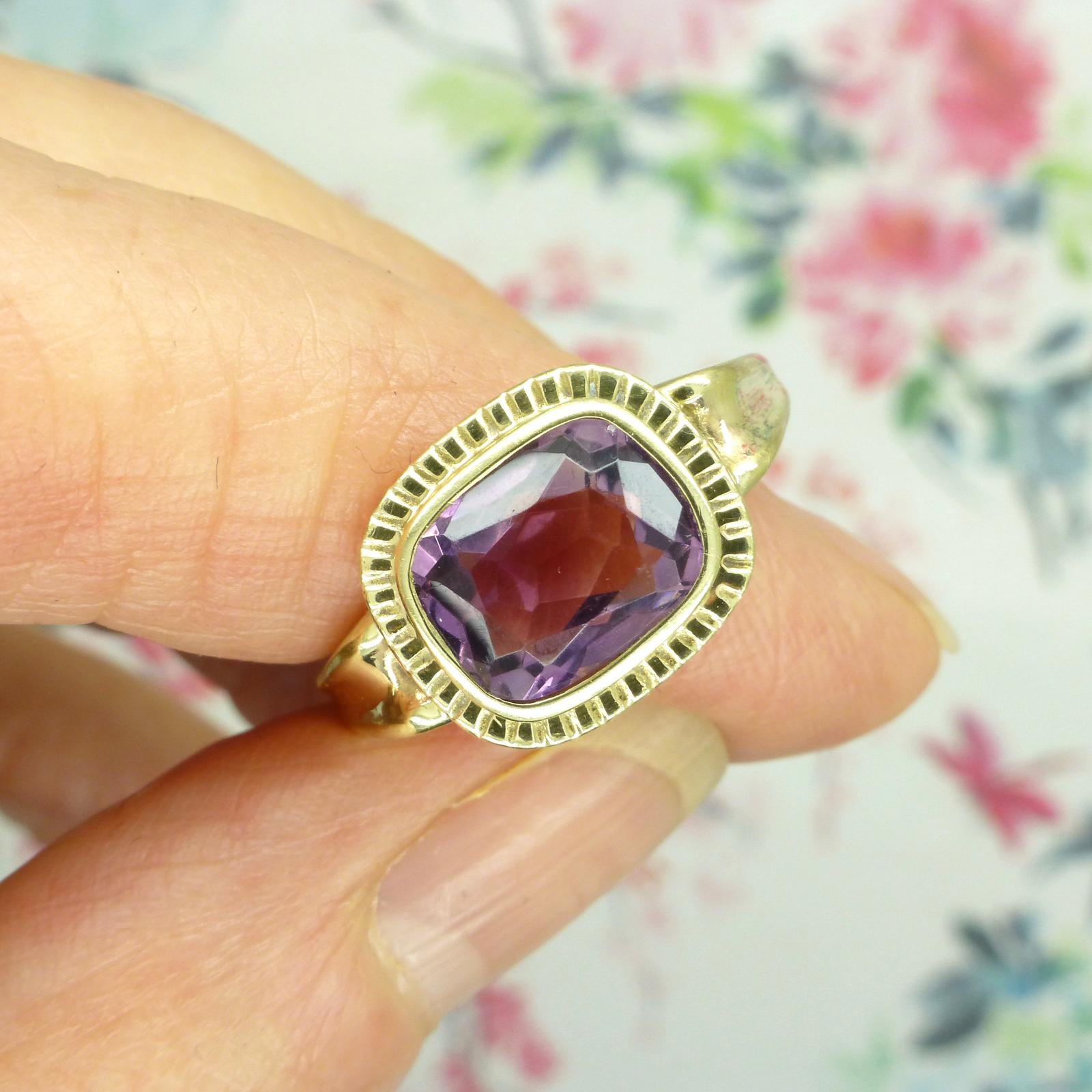 Vintage 9ct Gold Cushion Cut Amethyst Signet Solitaire Ring