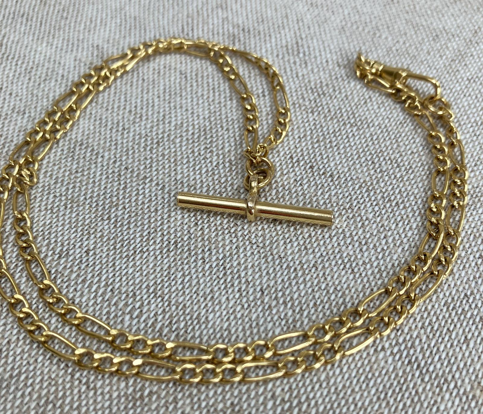 Vintage 9ct Gold Figaro Link Chain Necklace with T Bar