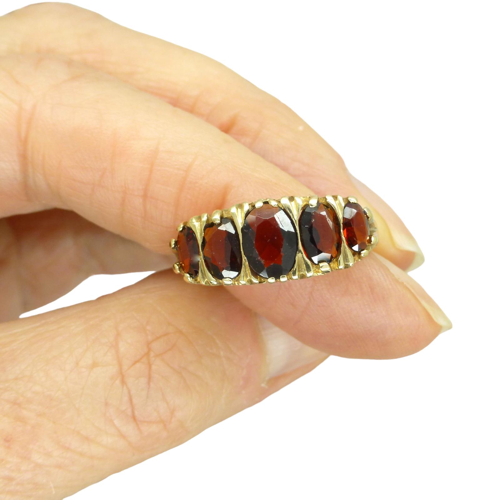 Vintage 9ct Gold Garnet Five Stone Ring Dated 1978